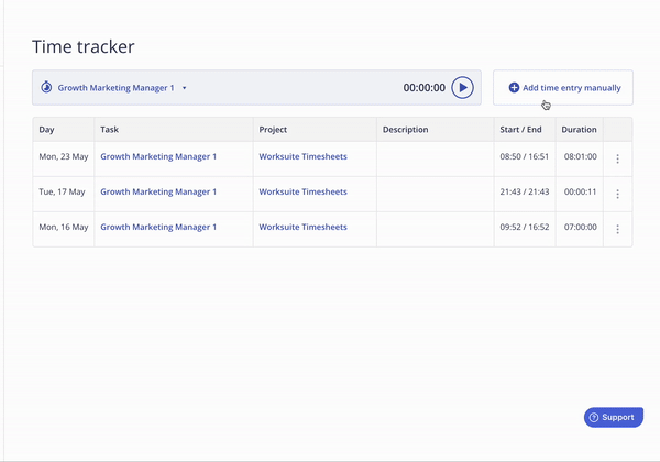 Have you forgotten to fill out your timesheet? Don't worry, you can type one in manually!