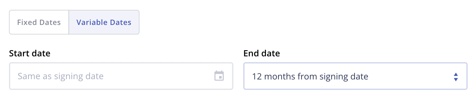 With this type of agreement, you may choose a Variable Date instead of a Fixed Date because if launched from an Onboarding Workflow, it's unclear when the contractor will be able to sign it.